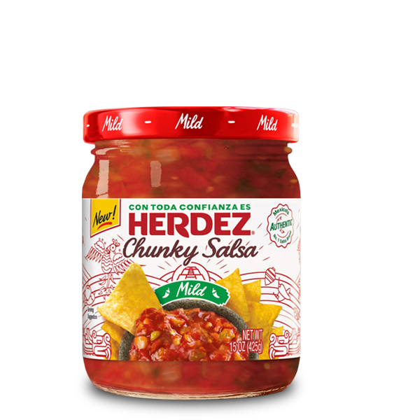 La Salsa Chunky Suave de HERDEZ se elabora con puré de tomate, tomates, chiles verdes, cebollas y otros ingredientes como vinagre, sal, pepino jalapeño y pimientos serrano. Su uso principal es como acompañamiento para nachos y otras botanas con totopos, aunque también es versátil para agregar sabor a platillos como tacos, enchiladas, fajitas, o como dip para otros alimentos.